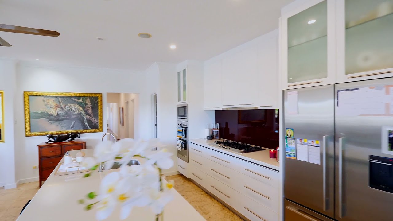 The north facing family room is undoubtedly the highlight of the home. With easy care travertine marble tiles throughout, huge picture windows that flood the room with light, and space for a large dining table. The gourmet kitchen, with walk-in pantry, stone bench tops and quality European appliances is the heart and soul of this family room