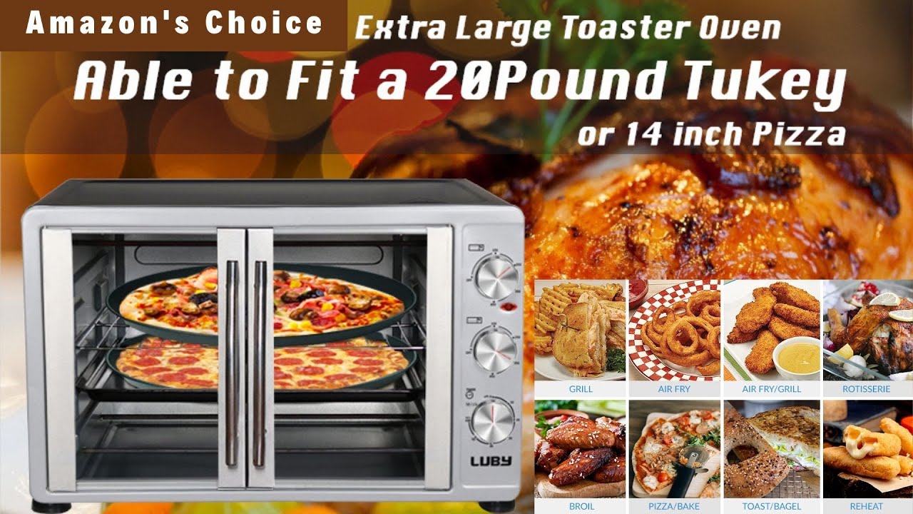 LUBY Large Toaster Oven Countertop, French Door Designed, 55L, 18 Slices, 14” pizza