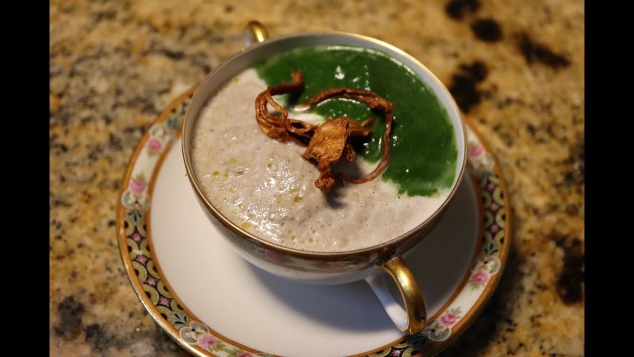 Two toned mushroom and spinach soup for Christmas. Vegan version.