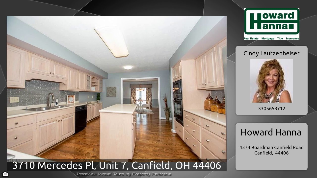 The Virtual Tour for the property at 3710 Mercedes Pl, Unit 7, Canfield, OH 44406 listed for $212,900: Other homes for sale by Cindy Lautzenheiser of Howard Hanna: Amazing Condo Boasting Upgrades Galore! Stunning Two Story Foyer showcasing an open staircase, hardwood flooring and abundant light. Formal Living Room or First Floor Office, Spacious Gourmet Kitchen abundance of cabinets, corian counter tops, island and appliances. Formal Dining Room, Great Room features gas log fireplace, french doors that lead to back deck and built-ins. Master Suite houses two walk-in closets and …