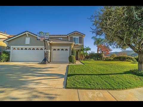 Gorgeous home in Stevenson Ranch on a corner lot and Cul-de-Sac! Upon entry, you notice the high ceilings and natural light in the formal living room and dining room. Hardwood flooring extends throughout the downstairs. The gourmet chefâ s kitchen offers Shaker cabinets, a 6 ft. island with breakfast bar and West Elm pendant lighting, Quartz countertops, white subway tile backsplash, designer smoothed slate flooring, and is complemented by double French doors leading to the backyard. The appliances are high-end with 2 Cobalt Collection ovens, Thermador dishwasher, gas range and stainless hood vent. Check out the stunning pool views while you cook and entertain! The kitchen opens to the large family room with home theatre surround sound speakers, fireplace, West Elm ceiling fan and built-ins. The bookshelf is highlighted with a Hue color ambiance light strip. Downstairs there is a remodeled half bath, laundry room and a spacious office that could become a bedroom, if needed. Upstairs you will find 3 bedrooms, including the luxurious primary suite with built-in speakers and balcony. Donâ t miss the view! The remodeled bathroom feels like a spa with glass shower, separate soaking bathtub, dual vanity, walk-in closet and mountain views. The loft offers an additional flex space to suit your needs. The backyard is an incredible oasis with mature trees and lush landscaping! The Saltwater Pebble Tech pool/spa has a baja reef, upgraded tile, LED lighting and is controlled via iAquaLink intelligent pool controls with remote. Additional SMART Home features include Rachio sprinkler controller, Nest Thermostat, 8 Nest Protect smoke alarms, and fully wired ADT alarm system. Stevenson Ranch is a desirable community, commuter-friendly with excellent schools, parks, hiking trails, shopping and restaurants!