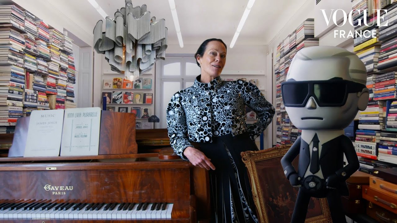 Amanda Harlech, l’une des plus proches amies de Karl Lagerfeld, nous emmène visiter la villa de Karl Lagerfeld située aux portes de Paris, la ” villa en dehors de Paris ou la villa de Louveciennes” comme il aimait l’appeler. Une bâtisse qui renferme de nombreuses pièces, chacune pensée comme de véritables petits écrins où Karl aimait autant se ressourcer pour y trouver de nouvelles idées pour ses collections, qu’y inviter ses proches, lui qui aimait que sa maison soit remplie d’amis. Au fil des pièces, on découvre sa passion pour l’architecture, l’art et le design, sa chambre, qu’il a voulu recréer comme la copie de celle de son enfance, et son étage, où se trouvait sa salle de dessin et sa bibliothèque où il s’asseyait pour dessiner “très vite, très brillamment” et dans laquelle il jetait ses brouillons à travers la pièce. Une plongée dans son univers personnel, un lieu où il pouvait exprimer “la vraie version de lui-même.”