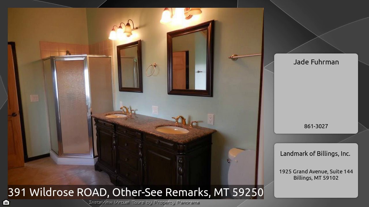 The Virtual Tour for the property at 391 Wildrose ROAD, Other-See Remarks, MT 59250 listed for $377,900: Other homes for sale by Jade Fuhrman of Landmark of Billings, Inc.: Log home on 5 acres in a small NE Montana farming community. Looking for a change, this log home features 4 bedrooms, 3 baths, a large kitchen, 3 living spaces and lots of room for toys (RV, boat, quads). The kitchen has a large island with a cooktop and double oven/range. There is a wrap around covered deck, French doors from the dining area and a slider from the master bedroom. The out buildings include a double garage …