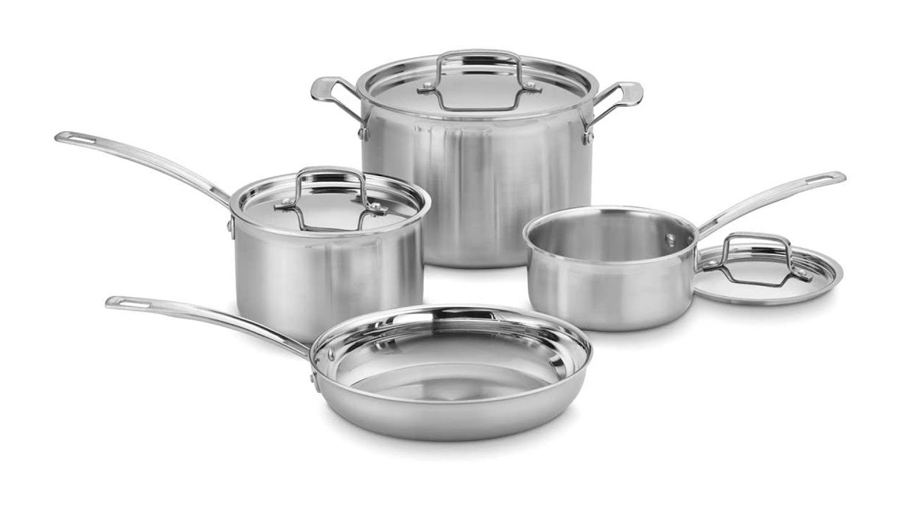 This fabulous set consists of basics and more. The 1.5 & 3-quart saucepan with lid takes care of everything from oatmeal to bechamel sauce. Also included are 8- and 10-inch open skillets that turn out perfect grilled cheese, hamburgers, and crepes; 3.5-quart covered saute pan with cover, great for braising meats and cooking fish fillets; and an 8-quart covered stockpot for stews and soups. Dishwasher-safe, this set has no coatings to flake off or plastic to melt, and will surely be passed down to the next generation. Cuisinart covers the Multiclad Pro set with a lifetime limited warranty against defects.