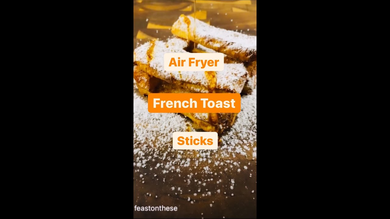 Mix eggs, vanilla, cinnamon and sugar mixture. Coat bread with mixture. Place in the air fryer at 350F for 10 minutes. Top with sprinkled powdered sugar and a drizzle of maple syrup.