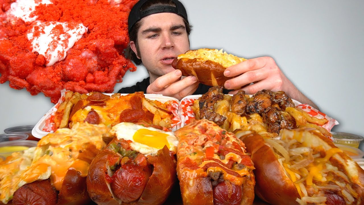 Eating some amazing loaded hot dogs and fries including Breakfast Hot Dog, Chili Cheese Dog, Carne Asada Hot Dog, Nashville Hot Dog, Pizza Fries, Lemon Pepper Cheesy Fries, Funnel Cakes, and more from a new restaurant in LA called Down to Fry! Let’s Eat!