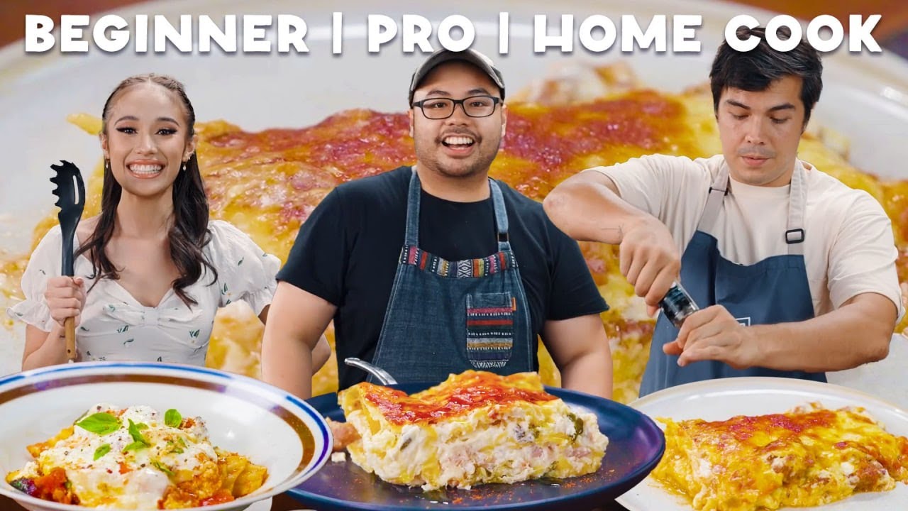 A tray of lasagna doesn’t only look visually pleasing, it’s such a delicious meal too. But can anyone make it? In this video, a beginner, amateur, and pro cook their versions of a lasagna!