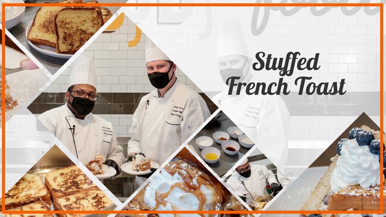 In the latest “Cooking in the Cave,” Mercer Dining chefs Jarvis Napier and Jimmy Brown whip up a dish that’s brimming with sweetness and cheer. Featuring Texas Toast, whipped cream, cream cheese and blueberries, this recipe for Stuffed French Toast transforms a classic breakfast food into a scrumptiously extraordinary offering.