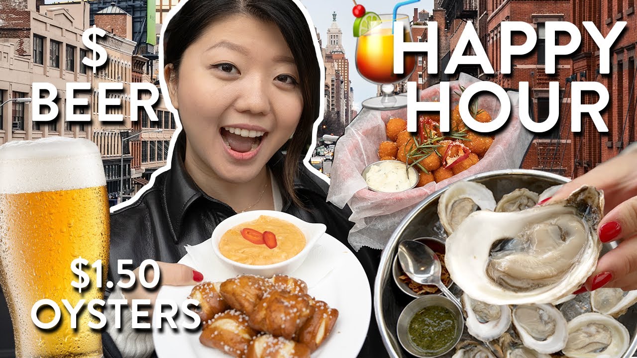 In this video we hit up some happy hour food deals around the city where you can get drinks and food for half the price in NYC!