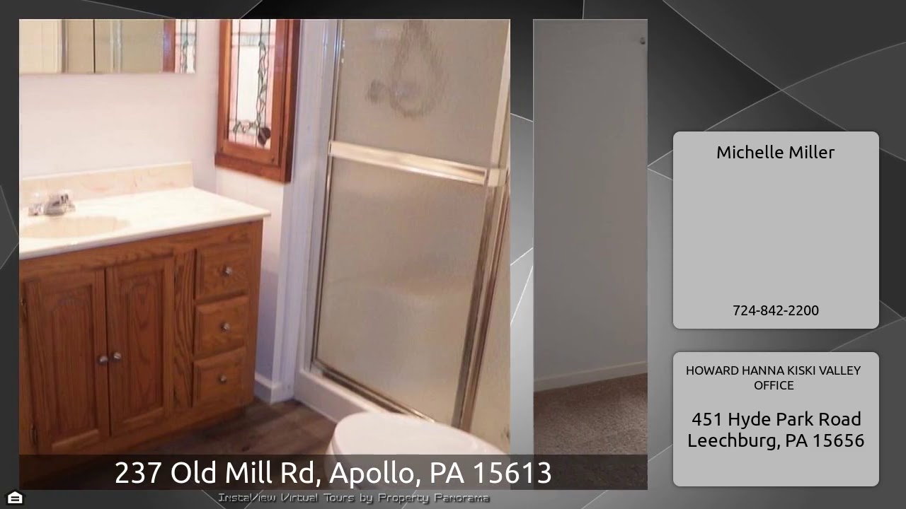 The Virtual Tour for the property at 237 Old Mill Rd, Apollo, PA 15613 listed for $199,999: Other homes for sale by Michelle Miller of HOWARD HANNA KISKI VALLEY OFFICE: Sprawling updated Brick Ranch Home awaits New Owner located on over 1 Acre in Washington Twp, complete w 3 stall Horse Barn & 2 Car Garage! Beautiful New Entry Door w Sidelights & Gleaming NEW Hardwood Flrs Welcome You into this Homes entry of w a Grand Open Floor Plan! There will be no problem w Cabinets & New Counter Space in Great Updated Kitchen. A Great Florida Rm located out the French Doors of the Dining Rm boast lots of …