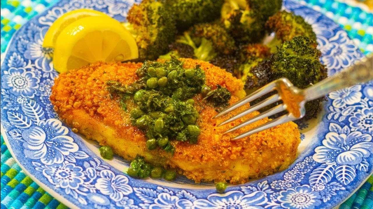 Crispy chicken cutlets topped with a tantalizing lemon/wine/parsley sauce. The ingredients I used are listed below. To get the printable recipe, please visit my website here: you for watching.