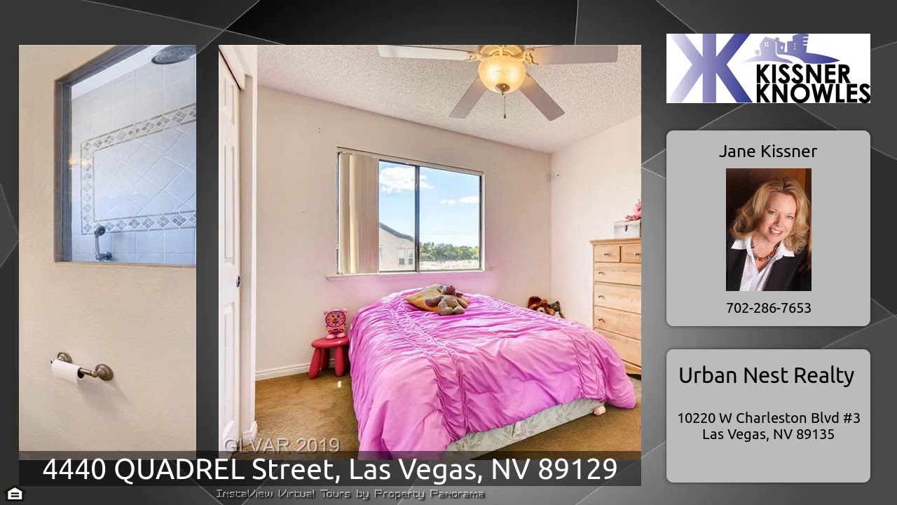 The Virtual Tour for the property at 4440 QUADREL Street, Las Vegas, NV 89129 listed for $574,200: Other homes for sale by Jane Kissner of Urban Nest Realty: Buy This Home and Get a Home FREE!! Guest House 1633 s.f. – Custom 4 bdrm+ home Pool/Spa, huge backyard, fabulous back patio, master suite w/wet bar, two secondary bedrooms with jack-n-jill bath, bedroom downstairs, lots of french doors, huge downstairs den, living & family rooms. Custom-Custom-Custom! 2 bd/2 full bth Guest House w/kitchen-dining-living room, laundry. All appliances Included! This is a Rare opportunity to grab a custom …