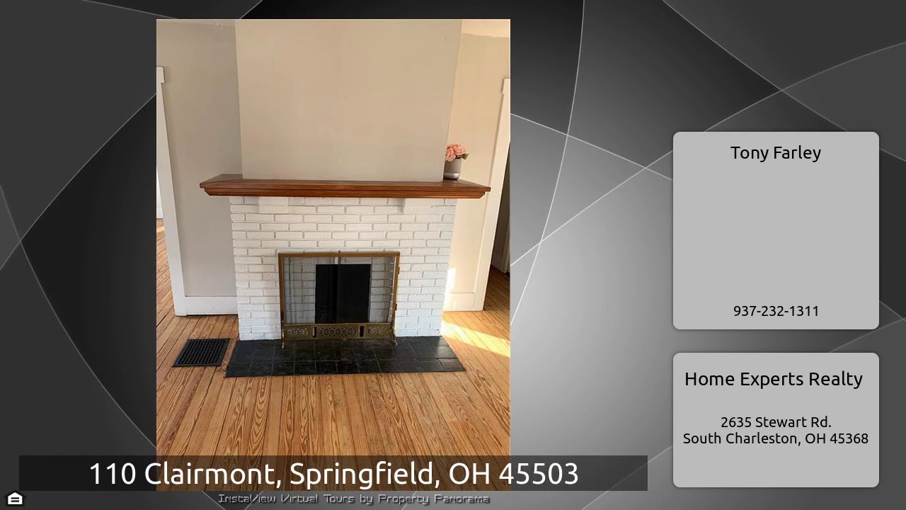 The Virtual Tour for the property at 110 Clairmont, Springfield, OH 45503 listed for $93,000: Other homes for sale by Tony Farley of Home Experts Realty: Old World Charm awaits you in this classic home! This home has 3 bedrooms 1 full bathroom and a full unfinished basement. Great Neighborhood! You will love the hardwood floors throughout the house as well as the beautiful fireplace in the living room. Walk to your favorite restaurant on Main Street, or dine in the Beautiful Dining room boasting nice French Doors. Just move in and relax! You will love the oversized covered front porch. All …