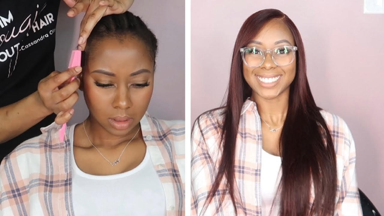 Slaying My Sisters Hair for her Birthday | Wine Red Glueless Wig Install | Cassandra Olivia
