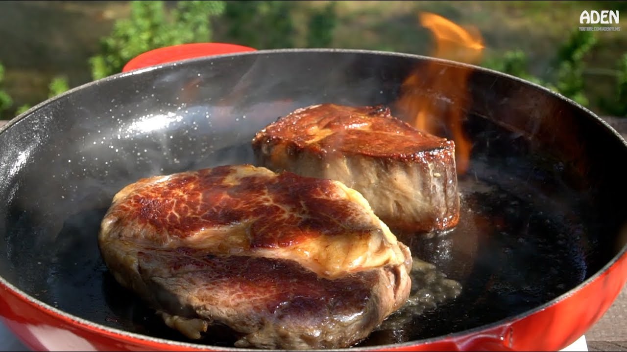 The bigger steak is from grain-fed Botswana beef. The smaller one is gras-fed, brandy-aged Argentine Black Angus beef – Clarified butter (Ghee) to get the pan started, flambéed in aged Rum from Panama (Malecon 25) – ArgentineBotswanacamera phoneCastFrancefreeFrenchFrench recipesIronRecipesharingskilletsteakuploadVideovideo phoneVlogYouTube
