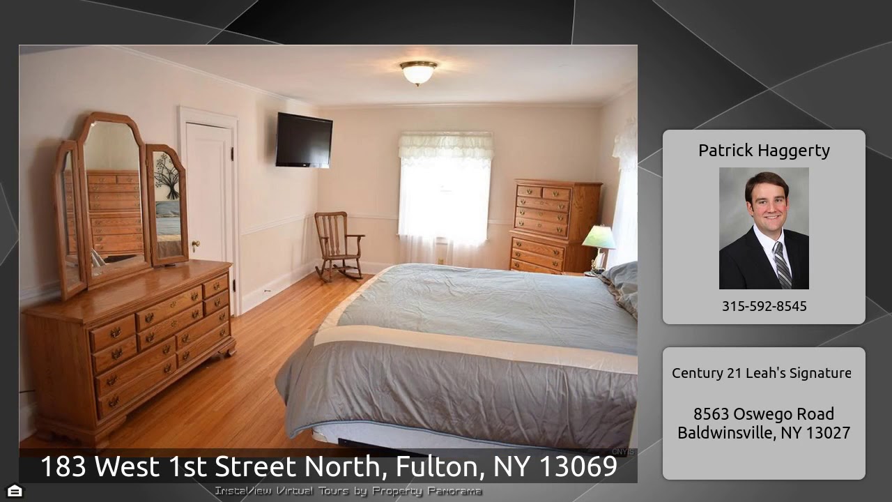 The Virtual Tour for the property at 183 West 1st Street North, Fulton, NY 13069 listed for $124,900: Other homes for sale by Patrick Haggerty of Century 21 Leah's Signature: Gorgeous colonial home with an abundance of charm and character. Beautiful hardwood floors throughout. Large living room centered around gas fireplace. Sunroom off of living room makes for great separate space to read, relax, or even serve as a playroom. Kitchen offers plenty of cabinet and counter space, plus unique built-in with ironing board. Formal dining room with french doors. Upstairs features an enormous master …