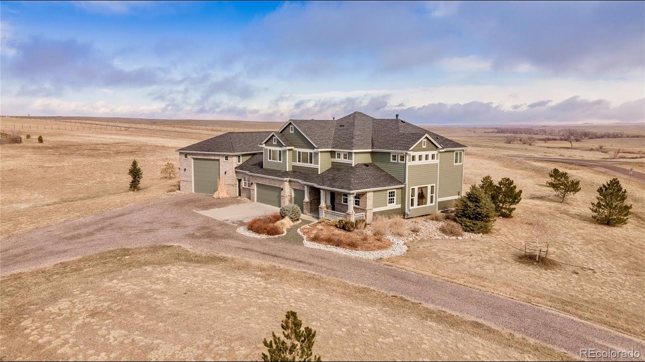 If you’ve been looking for a Perfect Home with a World Class RV Garage & Storage, look no more! This Extraordinary Semi Custom 2 Story Home is thoughtfully poised on 5 Acres with Awesome Views, Close to DIA, 5 minutes from shopping and blocks away from Blackstone Country Club. The highly sought-after Elkhorn Ranch is country living at its finest, it’s a lifestyle like no other. This beautiful 2 story home features a gourmet kitchen with granite counter tops, beautiful cabinets, large island, upgraded stainless appliance and is open to the family room with soaring 18’ ceilings. The master bedroom has a large sitting area with a bay window, gas fireplace and an over-sized master bath and walk-in closet. You’ll love the loft overlooking the family room with a Jack & Jill bath connecting to bedroom #3. The additional bedroom is its own suite featuring a 3/4 bathroom for guests or family members. You’ll definitely enjoy working out of the study featuring vaulted ceiling and french doors. Other features you’ll love is the central vacuum system, rich hardwood flooring, stunning wrought iron staircase, surround sound throughout, jetted tub, wired for 220 in the garage, 2 furnaces and central AC, drip system, spectacular views and much, much more. The garage addition features 16’ plus ceilings, 14’ X 14” door, 71′ deep and and rough in for an additional bathroom and RV hookups. FYI- I sold this home to my friends when it was brand new, and somehow it looks better than the day they bought it, with the exception of many more upgrades and the Garage every Car Guy or Gal dreams of!