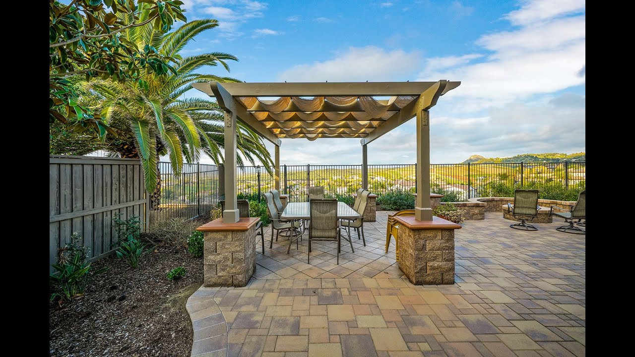 EXCEPTIONAL FOREVER VIEW HOME on a huge 1.35-acre lot! Unobstructed Northerly panoramic views of Sleeping Indian Mountain and the South Morro Hills Agriculture. Fantastic view backyard w/ bubbling stream like fountain, covered outdoor kitchen, built-in BBQ & expansive paver patio w/ pergola, firepit, & no rear neighbors. Gentle steps lead to a newly built sunset viewing deck below the fully fenced yard. Located in the desirable Montemar community of Arrowood w/ resort-style amenities & golf, this stunning home offers 5bd, large loft & office. The moment you step into the private, beautifully landscaped gated interior front courtyard with its cheerful disappearing fountain, you know you are home. Upon entering the foyer, you are greeted by a delightful tile mosaic, wrought ironed railing staircase, & elegant crown molding. Continue to a bonus room that could serve as an optional 6th bedroom, office, or sitting room with private dual pane French doors courtyard entrance. To your right is a formal dining room w/ premium wood flooring & French doors that open to the courtyard. On the opposite side, you pass through the butler’s pantry into the open concept kitchen and great room where you can enjoy a crackling fire & soak in the fantastic views from large picture windows or French doors leading outside. The chef’s gourmet kitchen has a sizeable pantry, huge table island, granite countertops, stainless steel appliances, double oven, microwave/convection oven, 5-burner gas range, and a built-in range hood. A large laundry room equipped with a utility sink and ample cabinet space, guest half bath, and a spacious rolling hill view downstairs bedroom w/ ensuite bath completes the first floor. The second floor boasts the oversized master suite featuring picture windows showcasing the stunning vista & a huge walk-in closet with custom built-in closet organizers. A roomy loft/bonus room, 3 bedrooms, & 2 baths adorn the 2nd floor. Ample parking and storage are available in the 4-car garage. Amenities include a community pool, spa, parks, walking trails, and a championship golf course designed by Ted Robinson, Jr.