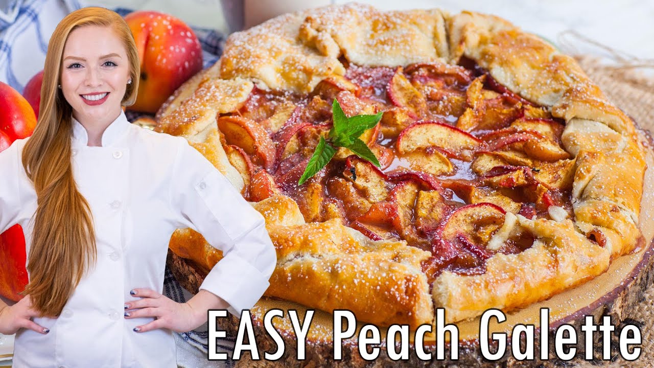 Easy, breezy and delicious peach galette tart, served a la mode with vanilla bean ice cream! The perfect summer dessert made with fresh peaches!