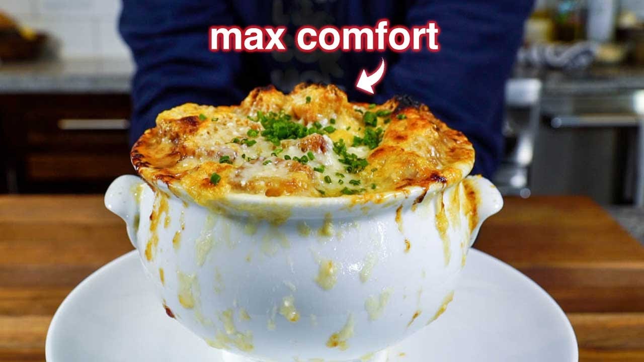 Great French Onion Soup requires 2 techniques, how to make a great brown stock and how to properly caramelize the onions.
