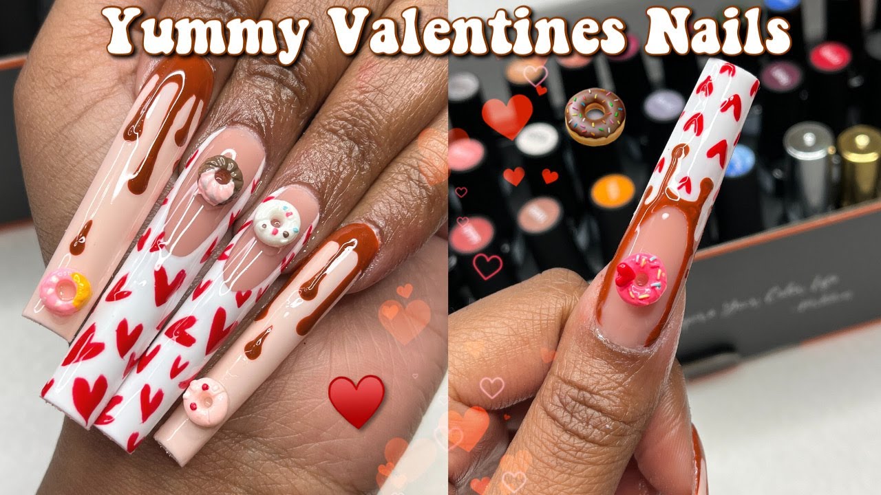 #modelones #valentinesdaynails #heartfrenchtips #yummy #chocolatenails #donutnails #nailart #deliciosnails #nailinspo #makarttpolygel #femibeautymethod #lazygirlmethod #longnails #3xlnails #aliexpress #squarenails #nailcharms #kawaii #valentinesnailart #heartnailart
