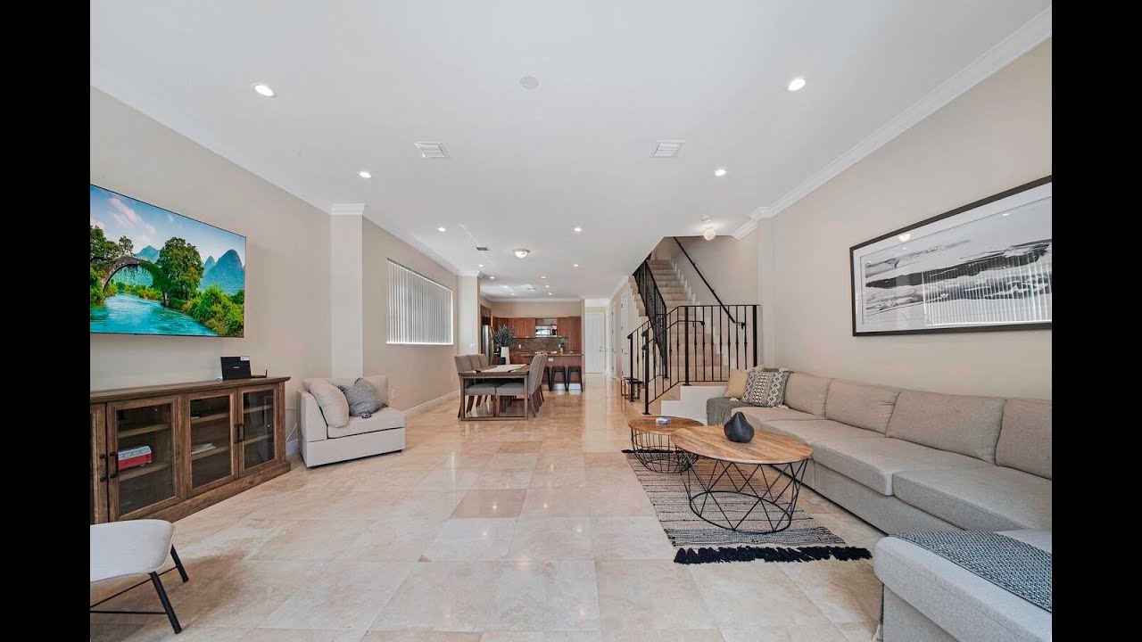 This magnificent townhome features a spacious open floor-plan for todays busy lifestyles. The gourmet kitchen is a chefs dream with granite countertops, full granite backsplash, stainless steel appliances, pantry and a snack bar. The luxurious master suite boasts a French door to the private balcony, custom his and hers walk in closet, dual sinks, soaking tub and a walk in shower. Stunning marble flooring, crown molding, hat lighting and an abundance of natural light are just a few of this homes high lights. Enjoy your tropical paradise on the back patio with a fully fenced yard. Located close to shopping dining entertainment, major highways, airports and the beach.