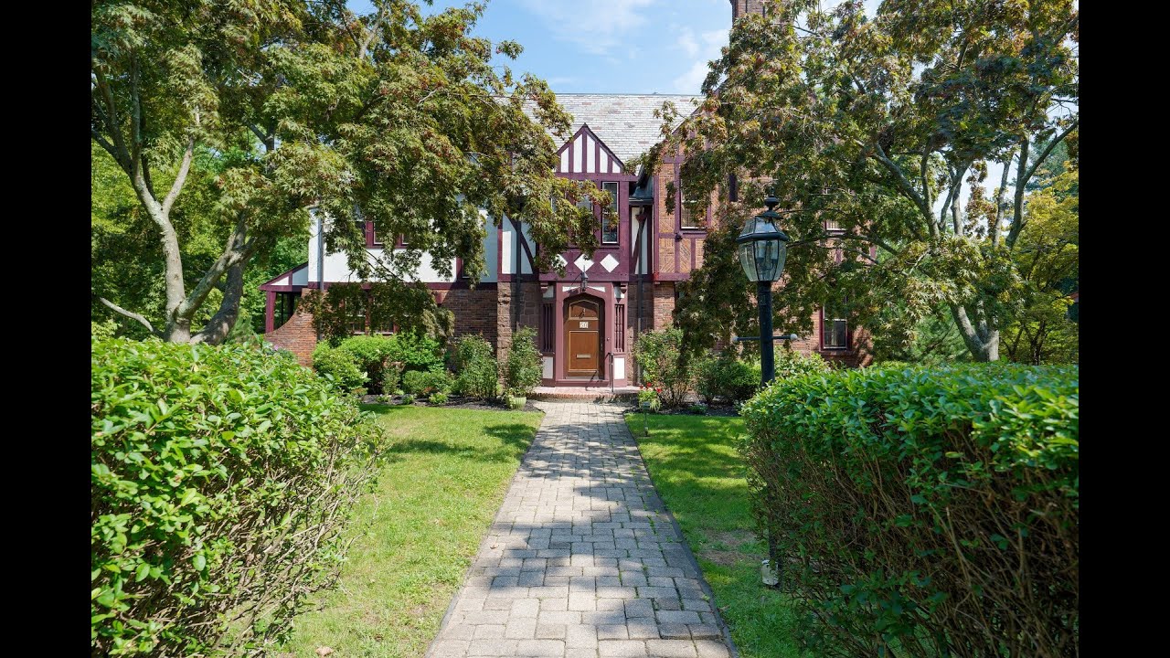 This Tudor home offers 4,329 square feet of living space with six bedrooms and four and one-half baths. Large marble-floored foyer, grand living room with French doors and fireplace. Dining room with lots of natural light and coffered ceiling, family room addition with walls of windows and cathedral