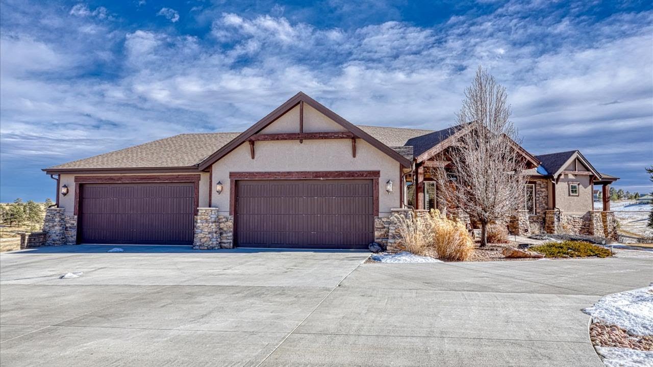See the Property Website! :: Kim Davis – Dynamic Home Team – 303-882-0888 :: Amazing one-level living on 5 Acres + huge walk-out basement, ready for your finishes in highly desirable Sky Rim neighborhood. You will not be disappointed in this home! Starting with the circular concrete driveway and 4 car garage. Stamped concrete walkway to the covered front porch, large inviting entry with wood floors, office has French doors, built-in bookcases, wainscoting, coffered ceiling, and wood plantation shutters, formal dining room with hardwood & carpet, wood plantation shutters and opens to the kitchen. Gourmet Kitchen features custom 42″ cabinets (2 color tones), quartz countertops, custom backsplash, Jenn-Air gas stove, Double Oven, Microwave Oven, Dishwasher, Counter Depth Thermador Refrigerator, Center Island with Breakfast bar (bar stools included), and pendant lighting. The eat-in Kitchen space has access to the covered deck. Living room with hardwood floor, ceiling fan, beautiful rock fireplace, large windows provide lots of natural light. Beautiful custom wood accents throughout including 8′ solid wood doors, custom trim, and crown molding. You will love the master bedroom suite with a coffered ceiling, gas fireplace, ceiling fan, access to the covered deck, and large walk-in closet that has built-in shelves and drawers. 5 piece master bath en suite with custom tile, shower with dual shower heads. 2 additional bedrooms both with ceiling fans and access to Jack & Jill bathroom. Laundry room with utility sink. Plenty of room to grow when you finish the walk-out basement. Stamped concrete back patio with gas fire pit. 5 Acre lot zoned RA-1 allows you to build an outbuilding.