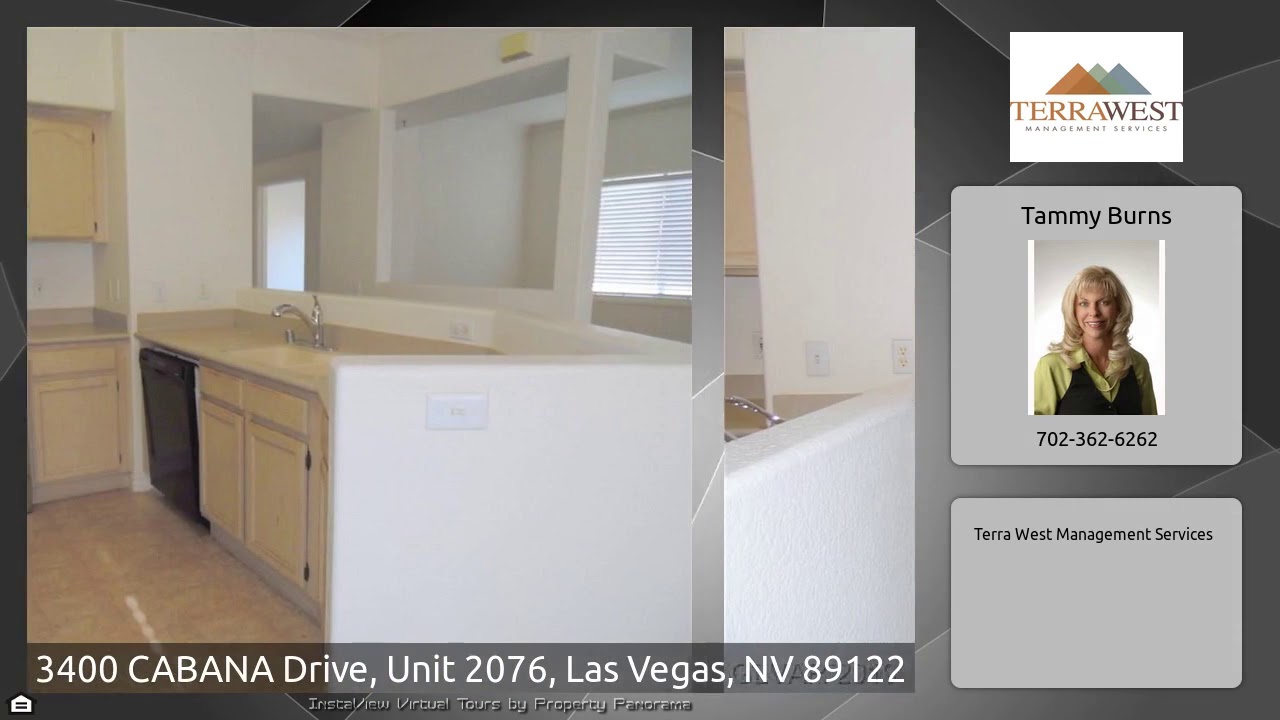 The Virtual Tour for the property at 3400 CABANA Drive, Unit 2076, Las Vegas, NV 89122 listed for $154,900: Other homes for sale by Tammy Burns of Terra West Management Services: Blackhorse Condo with View of Golf Course! Interior features Dining Area with French Doors leading to Balcony with spectacular view of golf course! Newer carpeting, stainless steel appliances, crown molding, upgraded faucets, ceiling fans, and neutral colors throughout! Community amenities include swimming pool, spa, exercise room, and gated. Grounds nicely maintained!