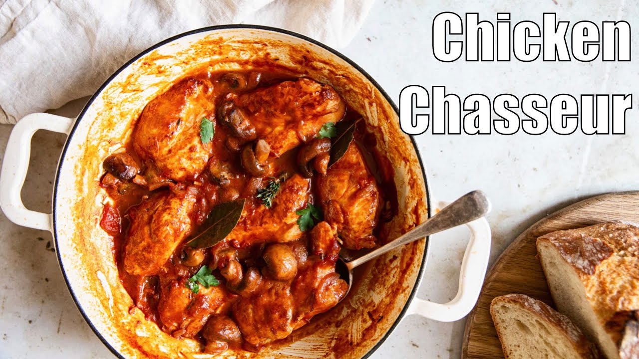 This recipe for this Chicken Chasseur is a less known French classic made quicker and healthier! Chicken breasts braised in rich tomato sauce with onions and mushrooms are easy and delicious!
