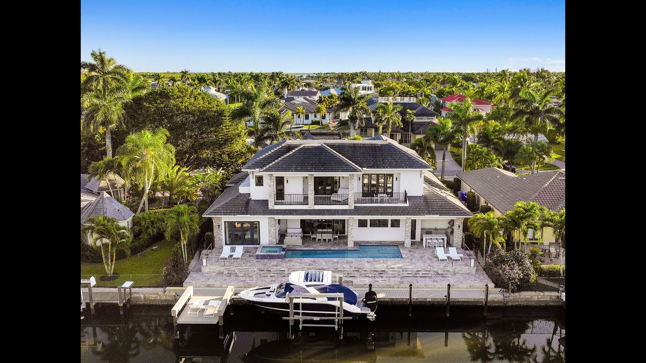 From lush landscaping and a spacious interior to generous rooms and exquisite finishes on every surface, 1275 Wahoo Ct in Royal Harbor is upscale boating life at its best. Guests are welcomed through a grand stone-laden entrance to a foyer with soaring ceilings and into a living room with a custom granite fireplace surround and water views. The gourmet kitchen flaunts show-stopping, Italian-made Snaidero cabinetry in its sleek design, rich grain textures and concealed cabinet pulls. Select Bosch appliances, a Thermador wine cooler and a single streamlined sink set in pristine quartz countertops complete the scene. Remarkable flooring begins on the first floor with a wide-plank French oak, inspired by an Italian wood master and crafted in Belgium. Custom tile in every bath adds a clean finish. Three fireplaces warm the great room, lanai and second-floor balcony. Florida outdoor living begins on a multileveled travertine lanai with an elongated pool, fit for swimming laps alongside a spa with a cascading spillover. A new dock flanks the entire rear of the property and features a sunbathing deck and boat lift, perfect for local boating and easy Gulf access.