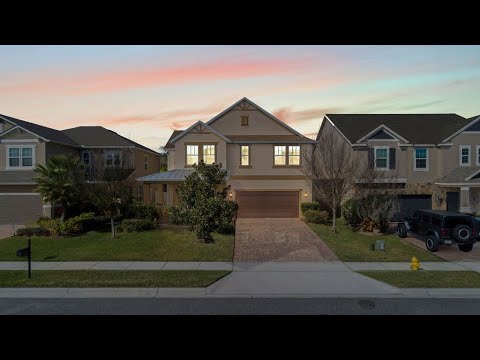 MOVE IN READY, Meritage built home in Winter Garden’s desirable Johns Lake Pointe. This home has 5 bedrooms, 3 bathrooms, an open floor plan with a family room, dining area, large kitchen, 2 car garage and a fenced in yard. Neutral paint inside, ceramic tile floors downstairs, and carpeting on the stairs and upstairs. The dramatic 2-story foyer will welcome you inside the home which opens to the family room, dining room and beautiful upgraded gourmet kitchen with 42” maple cabinets with crown molding and hardware, tile backsplash, stainless steel appliances, convection in-wall oven, granite counters, breakfast bar and closet pantry. What a great space to entertain! Open the French doors to the covered patio and the fenced yard! What a great space to enjoy your morning coffee or unwind at the end of a long day. There’s a bedroom and full bath downstairs also. The nice sized owner’s suite is upstairs with the other 3 bedrooms and features an updated en-suite bath with ceramic tile floors, a glass enclosed shower, tiled soaking tub, a 2 sink vanity, separate water closet and large walk in closet. An oversized loft/game room separates 2 of the guest bedrooms and all 3 guest bedrooms upstairs share the guest bath with a walk-in shower and separate water closet. Additional upgrades to this home include solar panels – that are PAID OFF – making the average electric bill between $10 – $55 per month, depending on the time of year. Every room has surround sound in it, including the owner’s bath, powered by a Nuvo surround sound system and the home has a water softener that stays. Johns Lake Pointe features a resort style pool and clubhouse, playground and tennis courts. Conveniently located close to the 429, the 408, downtown Winter Garden, Winter Garden Village, great shopping and dining. Don’t let this one slip away!