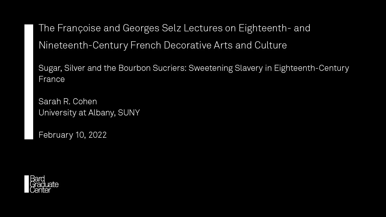 February 10, 2022 | Sarah R. Cohen, University at Albany, SUNY | “Sugar, Silver, and the Bourbon Sucriers: Sweetening Slavery in Eighteenth-Century France” | The Françoise and Georges Selz Lectures on Eighteenth- and Nineteenth-Century French Decorative Arts and Culture