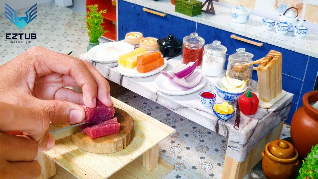 Everything Is Built By Us, Including The Kitchen Itself And All Tools. The Oven, The Cooking Plates And The Faucet Is Actually Working. All Food Are Real! Only A Little Smaller Than Usual.