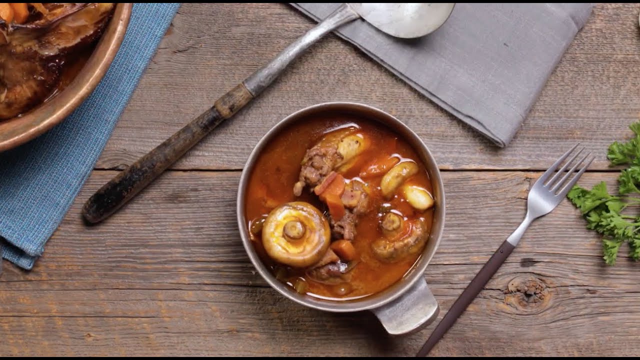 Although some form of coq au vin has likely existed since ancient times. It wasn’t truly popularized until the 20th century when Julia Child brought French cooking to the masses. Now you’re the next chef in line to make this rich and tender, red wine-based chicken stew packed with mushrooms, pearl onions, plenty more fresh veggies and bacon.