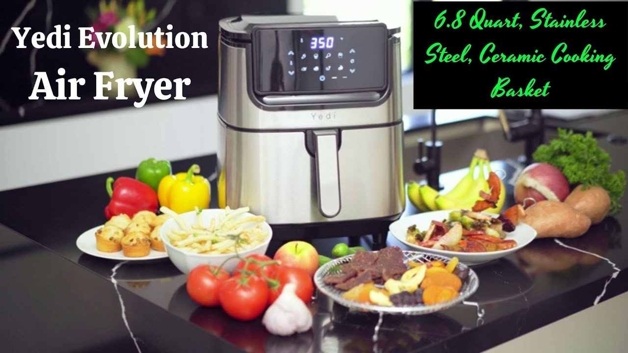 Yedi Evolution Air Fryer, 6.8 Quart, Stainless Steel, Ceramic Cooking Basket, with Deluxe Accessory Kit and Recipe Book