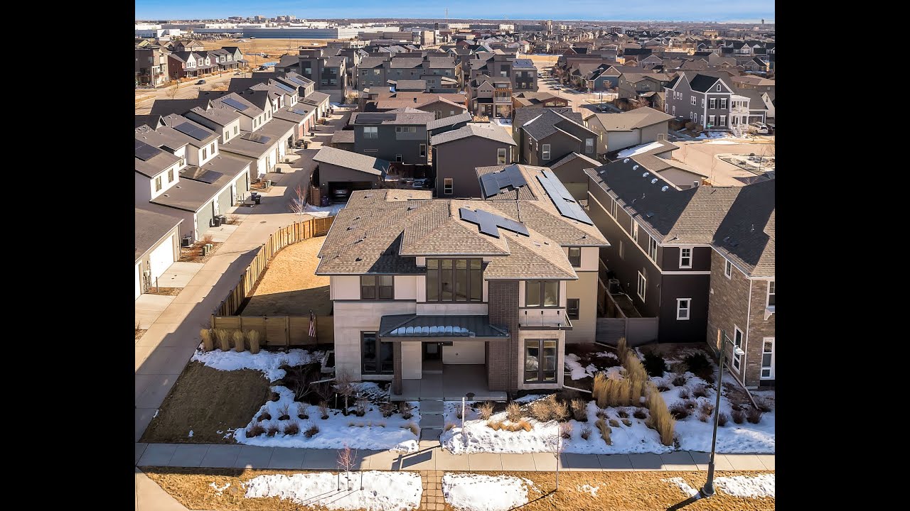 Fully upgraded Infinity Haus 3. This entertainers dream turn-key home equipped with a commercial grade gourmet kitchen complete with Bosch & Thermador appliances, double dishwashers, ovens & walk-in pantry. Slab quartz countertops, large eat-in island with statement pendant lights, bring it all together to make this kitchen a true dream. Wide planked hardwood floors throughout accentuate the main floor. A shiplap lined 2 story gas fireplace showcases the soaring 25ft ceilings filling the space with natural light. Additionally, an upgraded guest suite with en-suite bathroom, a formal dining area, a study with french doors, & a breakfast nook finish it off. The luxury wide staircase leads to a large airy loft lined with windows to take in stunning mountain views. A spacious master retreat featuring a beautiful statement wall, while herringbone tiled floor showcases a 5 piece bathroom with a soaking tub, & walk-in shower. In addition to the master suite there are 3 bedrooms, 2 full baths, laundry room, & child friendly bonus room finished with wall mounted TV & sound bar as well as a decorative mountain scape. Head down to the basement that is fully equipped with a custom wood wet bar, home theater projector setup, wine fridge, & playroom with a climbing wall & stair nook for the kids. Another full bedroom suite creates the perfect space to house guests. Take control of your home utility expenses with the recently installed, FULLY PAID 14.3kwh Tesla PV system, doubling the avg. system size in Denver! The system was designed to offset more than 100% of the home’s electricity usage including 2 EVs. Saving you money while generating clean renewable energy with 25 yr warranty. As if all of that wasn’t enough, the home also features a 3.5 car attached tandem garage, pre-wired for 220v.A SmartThings Hub included for automating your smart devices, as well for the large clean oversized corner lot to design your dream entertaining space for fido and kids. This place has it all.