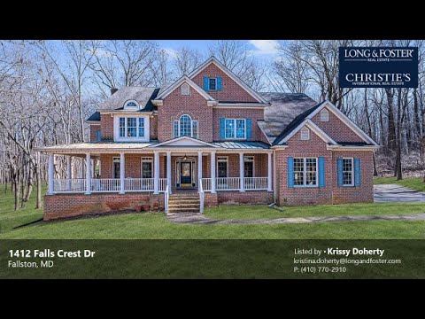 Welcome to 1412 Falls Crest Drive- a 5300+ sq ft, custom built home in the coveted neighborhood of Falls Crest in Fallston. This home has a very private lot situated on just over 4.5 acres of park-like land which includes a serene stream & ample room for kids to play. This all brick home, features an expansive wrap-around, all brick, porch with copper roof & french doors- perfect for drinking your coffee in the AM & enjoying nature. Walk into the grand, two story foyer with beautiful hardwood floors throughout most of the main level. Enjoy a two story, custom stone, wood burning fireplace to keep the Great room cozy.  Lots of windows throughout providing ample natural light. Brand new 400 sq ft Trex deck  off the kitchen- perfect for those backyard BBQs. Gourmet kitchen featuring large island, pantry, Kitchenaid appliances, double oven, granite counters and 42in custom cabinetry are sure to please any cook. Desirable, main level bedroom with en suite bathroom & large closet for guests or inlaws, or possible home office or gym. Huge, finished, 3 Car Garage with separate entrance to basement The 2nd Level features a Primary Bedroom featuring tray ceilings, a large sitting area with gas fireplace, two walk in closets, and spacious en suite bathroom with beautiful clawfoot tub, separate shower & dual vanities. Three additional sizable bedrooms with huge walk- in closets with built-ins, along with 2 full bathrooms, round out the 2nd Level. Huge 2500+ sq ft partially finished Lower Level with extra course block ceilings, windows, wall to wall carpet, recessed lighting, walkout to side yard, pellet stove & stone chimney, and rough in for potential 5th full bathroom. Ample storage found inside home & separate dry storage area (8′ x 25′) under the house for any yard tools/equipment. Located in the desirable Fallston School District, this home also has a Rain Soft water system, separate upstairs and downstairs heating & cooling systems, and a main floor laundry room with built-ins and access to the rear brick back porch. Recent updates to include: New well pump & water tank (2021), Trex Deck (2021), New lower and upper ACs & upper heat pump (2020), and new oil fired water heater (2019).