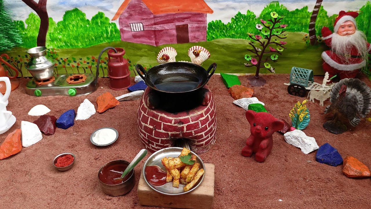 The things which we used to cook this miniature French Fries in Kids kitchen sets, we tried in the way of primitive method of cooking using miniature utensils.