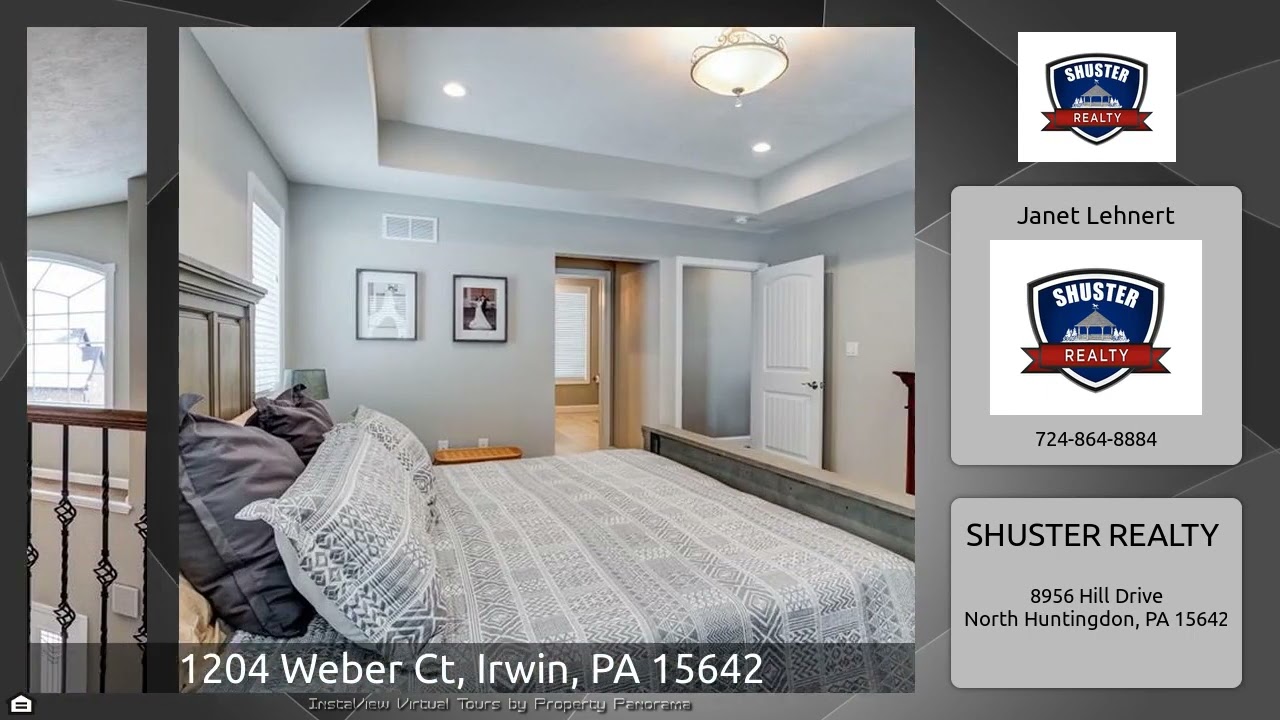 The Virtual Tour for the property at 1204 Weber Ct, Irwin, PA 15642 listed for $699,000: Other homes for sale by Janet Lehnert of SHUSTER REALTY: PALATIAL SHUSTER BUILT MASTERPIECE LOCATED ON A CUL DE SAC STREET!GOURMET UPSCALE KITCHEN FEATURES GE PROFILE BLACK SLATE SS APPLIANCES, CABINET DEPTH FRENCH DOOR REFRIGERATOR, GAS ON GLASS 5 BURNER COOKTOP, FREESTANDING HOOD, CUSTOM PEARL WHITE CABINETRY, CHERRY ISLAND W/QUARTZ COUNTERTOPS. 1ST FLOOR FEATURES 9 FT CEILINGS W/OVERSIZE WINDOWS, MASTER W/TRAY CEILING, TRANSOM WINDOW OVER DR. SLIDER, WIDE BASEBOARDS. FLOORING INCLUDES WIDE PLANK …