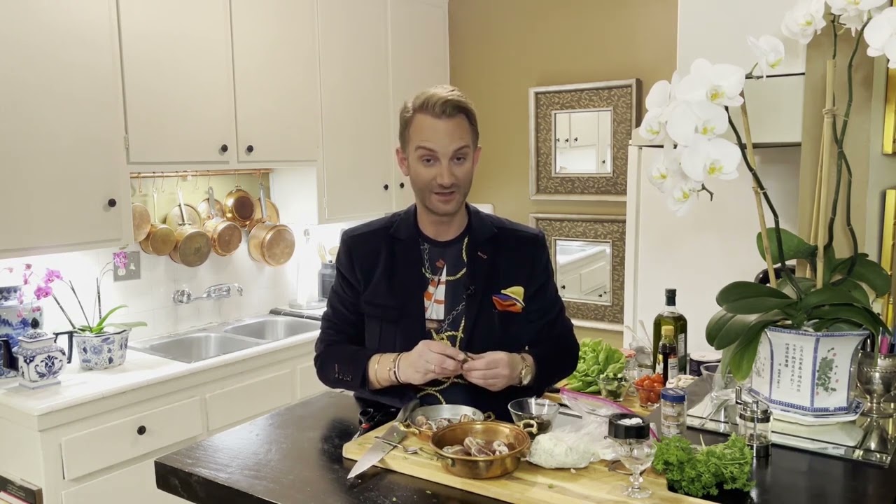 Johan, The Dapper Swede makes Ludo Lefebvre’s garlic parsley butter escargot as a simple supper served with baguette and a side salad. The side salad is topped with a homemade vinaigrette dressing.
