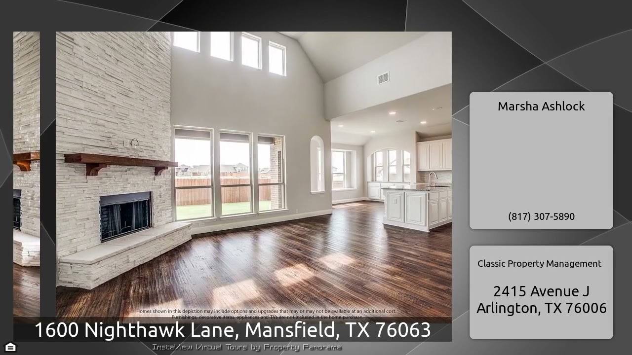 The Virtual Tour for the property at 1600 Nighthawk Lane, Mansfield, TX 76063 listed for $598,990: Other homes for sale by Marsha Ashlock of Classic Property Management: Bloomfield Home Under Construction, Est. Complete March 2022! Single story with open concept Kitchen, Breakfast nook, Dining room & Family Room sitting on a Corner lot. Tile in all common areas; carpet in bdrms. Formal Study w French Doors and Formal Dining off Rotunda foyer. Large Primary Suite with sitting area, separate shower, garden tub, separate vanities, and large WIC. Stone to ceiling fireplace in Family room. …