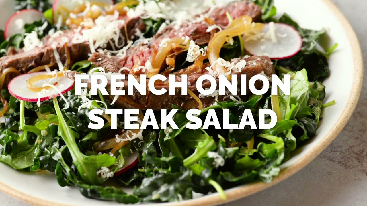 French Onion Soup is a classic fall favorite that’s rich, seasoned with beef broth, jammy onions and red wine, and topped with a decadent cap of melted gruyere cheese. It’s heavenly. So I took those delicious flavors and created this French Onion Steak Salad! For the full recipe: