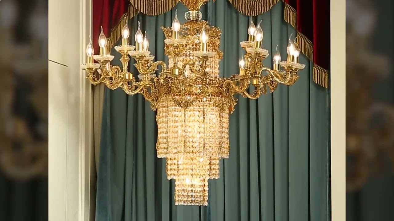 This is a stunning 10-light chandelier with a beautiful combination of top-quality copper/crystal material and unique candle design, present . We only use finely selected top-quality copper material and K9 crystal. Finest material guarantees the quality. This light hang 33.4 inches in width and also length, 34.6 inches in height and it weighs 66.1 lbs. Our professional mold/casting process create this beautiful lamp body with uniquely designed gorgeous pattern; K9 crystal chain with themulti-faceted fine cutting process, creates a smooth surface and bright reflection; our dewaxing process and the unique hollow bottom-tray/candle design, with every attention to details. All this effort made this three-dimensional, beautiful design. This would be a great addition for your living room, dining room and more, bring charms and aristocrat vibe to your gorgeous house.
