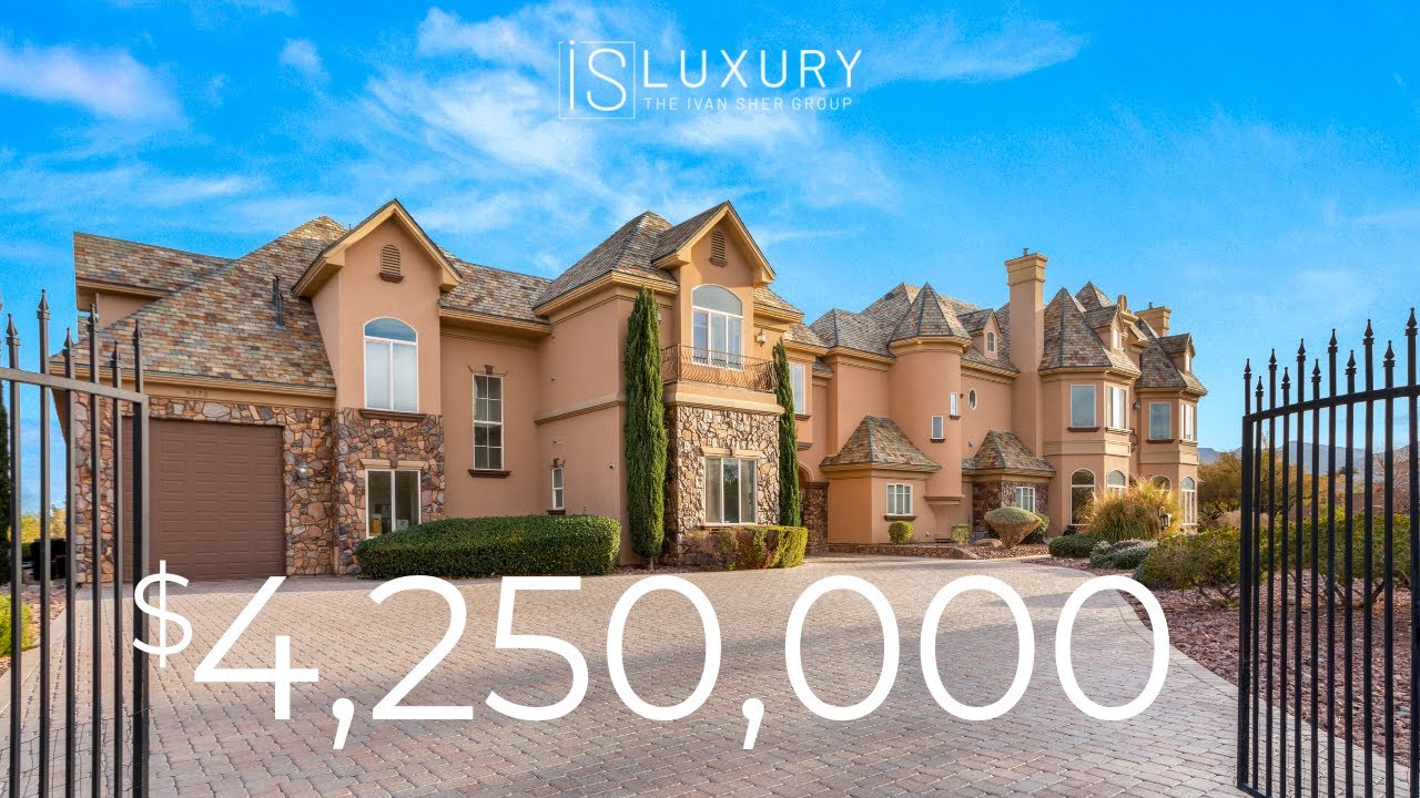 “The Castle” in Northwest Las Vegas is a one-of-a-kind property that sets the standard for luxurious living. Set on over 2.4 acres, this sprawling castle combines the imperial grandeur of a French chateau with the extravagance of a world-class resort. With over 9,400 sqft of living space, this estate is fit for royalty, with expertly crafted finishes, turrets, custom built-ins, hardwood floors, and cathedral ceilings. At the heart of the home is the gourmet kitchen, boasting two kitchen islands, custom cabinets, and professional-grade appliances. Additional features of the home include two family rooms, a 7-car garage, a solar field, a media room, a home gym, and an office/library. The main level’s primary suite features three walk-in closets, a claw-foot tub, a spa shower, and dual vanities. Beyond the home’s majestic interior, the home’s exterior astounds with its striking backyard, features an outdoor kitchen, resort-style pool and spa, a waterslide, waterfall, and more.