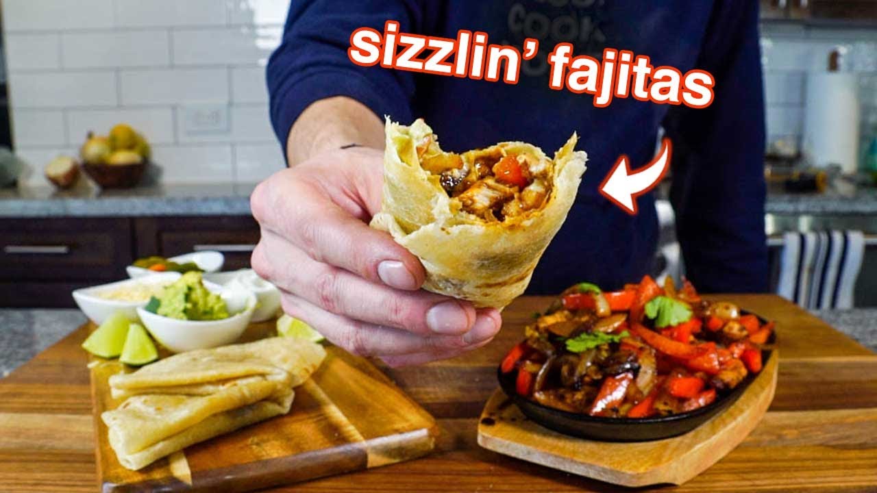 Today we replicate the sounds and smell of a sizzle platter being walked through a restaurant dining room in the home with an easy weeknight sizzling chicken fajitas platter, including the secret to creating that iconic sizzle.