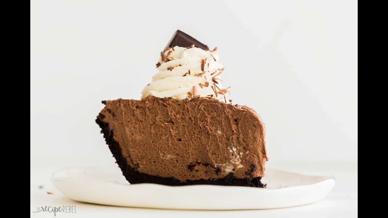 This easy French Silk Pie is made with a fluffy, rich chocolate filling and no bake Oreo crust, topped with sweetened whipped cream and chocolate shavings. Easier than most, and no raw eggs! (MORE BELOW)