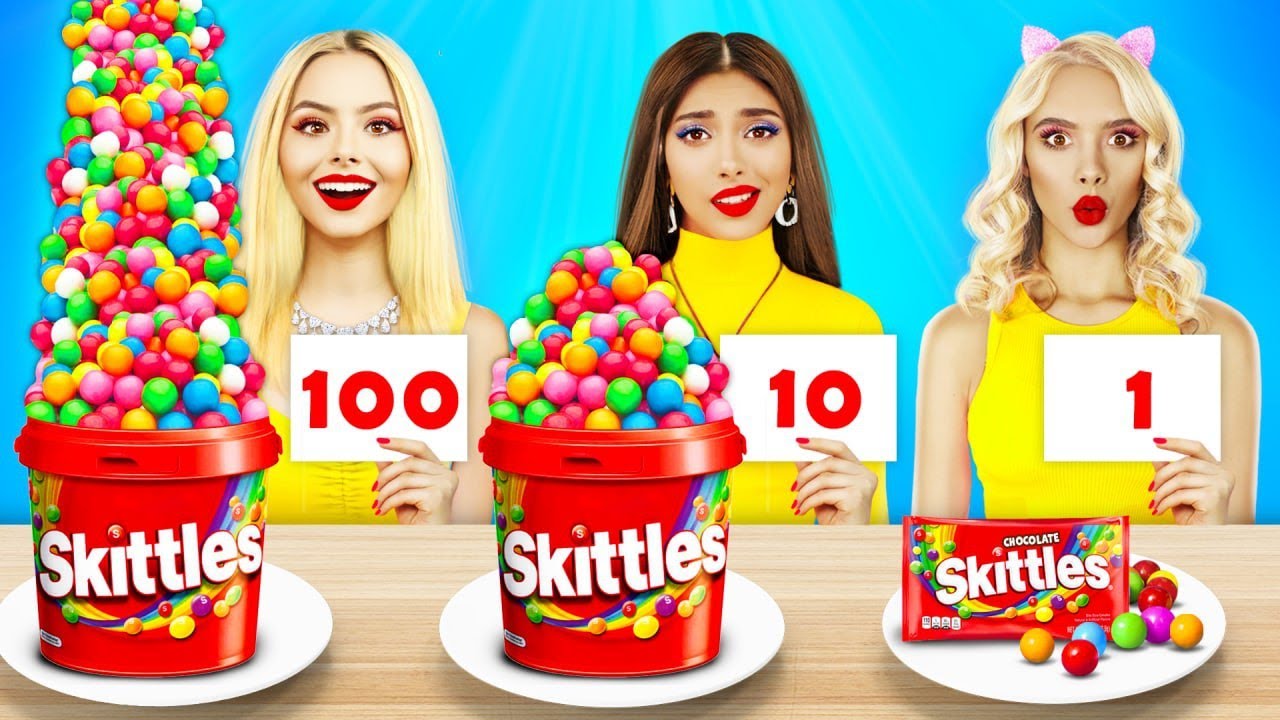 We were hungry while watching our new video, because we couldn’t imagine so many mouth-watering sweets and chocolate food! 100 layers of food challenge can surprise even us! We will be eating sweets and snacks for 24 hours and are not sure if we will have time. Maybe you can help us?