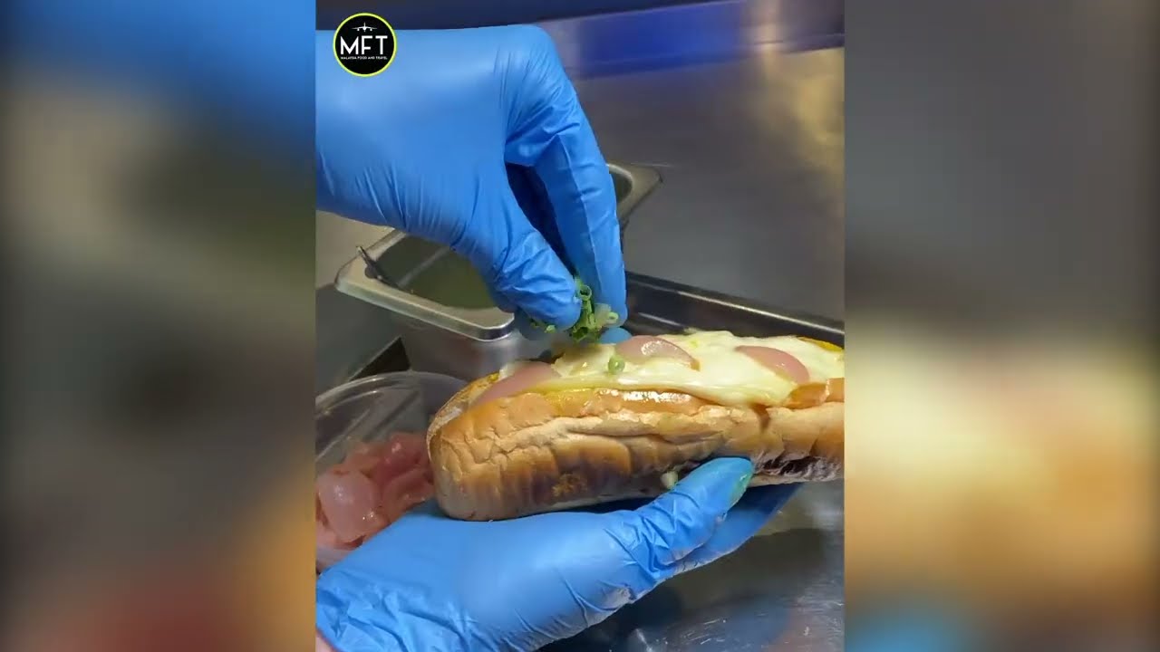 🍞Melted Raclette Cheese Sandwich and imported Raclette Cheese from Europe – they use a baguette bread with smoked chicken breast stuffed with melted raclette cheese! You can even get some cheesy goodness on your hotdogs or potato wedges, making it so delicious!🧀