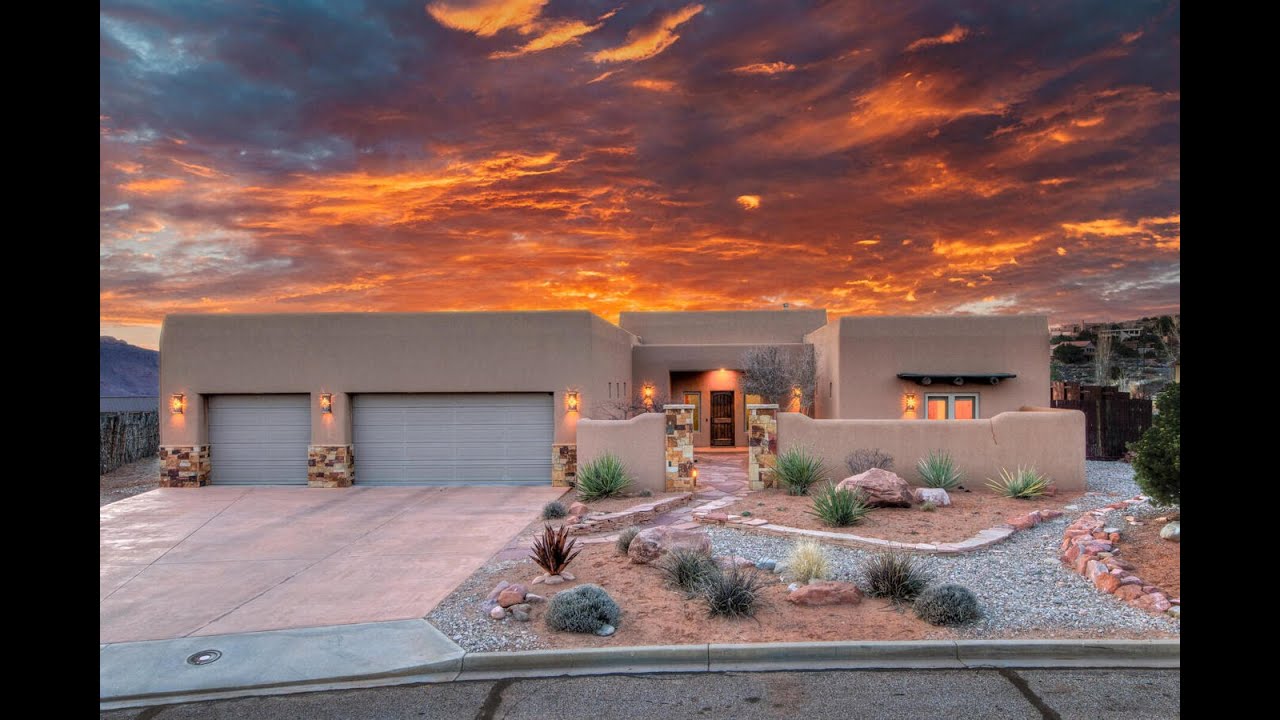 This contemporary Southwest home welcomes you inside with its private courtyard and tasteful entry. The entry opens into the great room designed for comfortable living and entertaining. A graceful flat arch connects the great room to the dining and kitchen areas. French doors and high windows in these rooms allow for amazing views of the iconic Moab rim, and lead to a wrap-around porch for alfresco dining. The kitchen features solid surface counters, nearly new stainless appliances, a spacious island with seating for 4, and a large walk-in pantry with ample storage. The master suite includes a well-designed walk-in closet; private office with beautiful built-ins for plentiful storage; a luxurious bath with double sinks, a spacious walk-in shower with two shower heads, heated floor, jetted tub, linen-closet, and separate water closet. The third bedroom features French doors opening onto the courtyard making it an excellent option for a work-at-home space. Other outdoor living areas include the south facing courtyard with views of the LaSal Mountains and a private patio off the master suite. Other carefully planned amenities include a roomy laundry/workout room that includes washer, dryer, storage and sink; oversized 3-car garage; heated workshop space with double entry doors and natural light; oversized 75-gallon water heater. Located on a quiet street in a highly desirable area close to Moab’s golf course, the oversized lot is aesthetically landscaped with water wise plants on a fully automated drip and sprinkler system. Lot has privacy fencing on both the east and west boundaries.